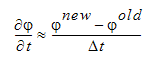 represents the dependent variable (u, v, w,....). This term is discretized using a backward difference: