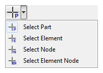| Select Part: Toggle to select a part and probe values on the part Select Element: Toggle to select an element and probe values on the element Select Node: Toggle to select a node and probe value from the node Select Element Node: Toggle to select an element node and probe values |