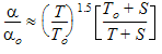 The following equation describes the Sutherland property variation: