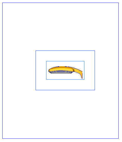 An extension of this technique is to nest multiple regions around the device. Create these regions in the CAD model as Refinement Regions in the Autodesk® CFD Mesh task do not support this technique. This concept is illustrated:
