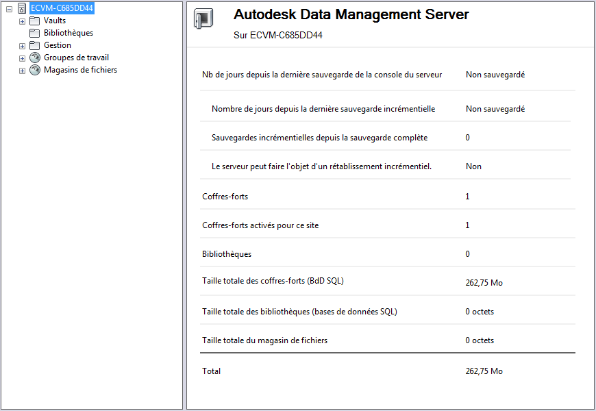 - le nombre de bibliothèques du Centre de contenu sur le serveur (non applicable à AutoCAD Civil 3D),