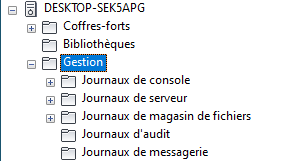 Accédez aux fichiers journaux de la console, du serveur, du magasin de fichiers, de l’audit, de la passerelle Vault et de la messagerie dans le dossier Gestion.