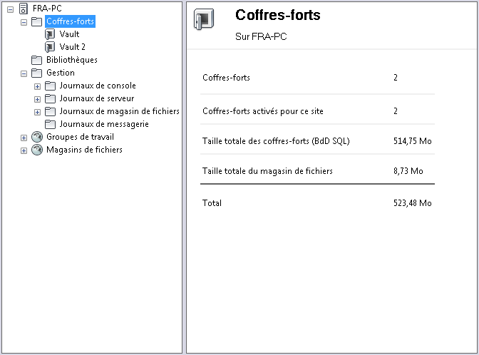 Dans la fenêtre de navigation d’ADMS Console, cliquez sur Coffres-forts.