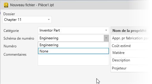 Pour les applications de CAO, tous les fichiers indépendamment de la sélection de catégorie sont filtrés dans le schéma de numérotation « Ingénierie ».