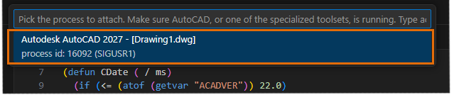 • AutoLISP Debug: Attach – Allows you to attach VS Code to an instance of AutoCAD that is already running