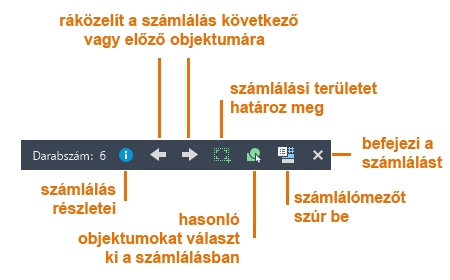 Az aktív számlálásban a Darabszám eszköztár a rajzterület tetején látható.