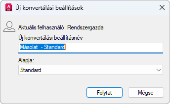 KONVERTDWG (parancs) Keres: Konvertálási beállítások > Új