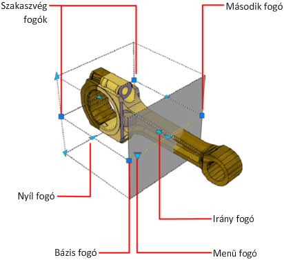 A metszet objektumok fogói megkönnyítik a metszet objektum mozgatását és átméretezését.