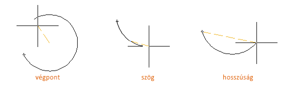 Pozitív számérték megadása az óramutató járásával ellentétes irányú ívszakaszokat hoz létre. Negatív számérték megadása az óra járásával megegyező irányú ívszakaszokat hoz létre.