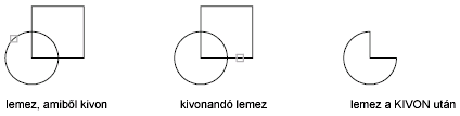 Lemezek kivonása esetén a második kiválasztási halmaz objektumát a program kivonja az első kiválasztási halmaz objektumaiból, és egyetlen új lemez jön létre.