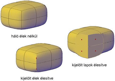 Lehetősége van visszaállítani egy hálóélt olyan simított állapotba, amely az objektum simítottsági szintjéhez tartozik. Ha eltávolít más élesített alobjektumokkal érintkező hálóélt, azok körvonalai megváltoznak.