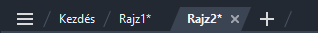 A fájllapokat a rajzterület tetején jeleníti meg.
