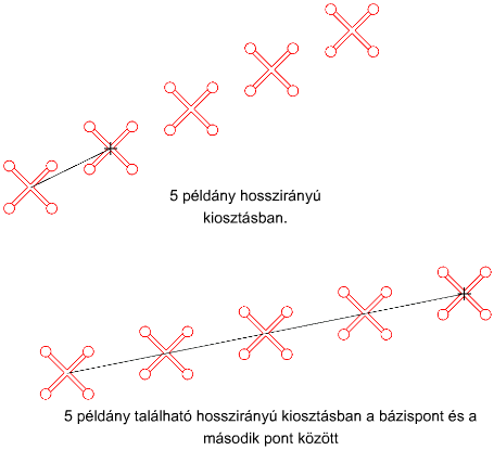A kijelölt két pont meghatároz egy olyan vektort, amely jelzi, hogy a másolt objektumok az eredetitől milyen messzire és milyen irányban vannak elhelyezve.