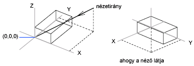 Létrehoz egy olyan vektort, amelynek irányából a rajz nézhető. A nézet iránya a tér megadott pontjáról az origóra (0,0,0) mutat.