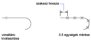 Az AutoCAD a kijelölt objektumon előírt szakaszonként ismétlődő pont rajzelemeket helyez el. A rajzolás az objektumot kijelölő ponthoz legközelebb eső végpontnál kezdődik.