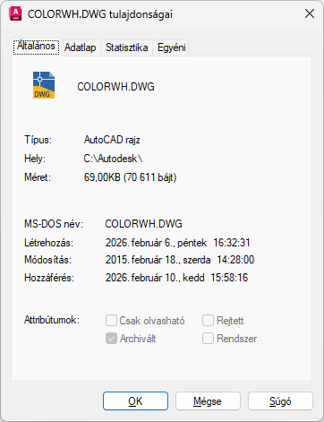 Az operációs rendszerből származó, csak olvasható információt jelenít meg a rajzfájlról.