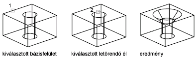 A MOZGAT, a FORGAT és a LÉPTÉK parancsot ugyanúgy használhatja a 3D szilárdtestek és felületek éleinek módosítására, mint bármely egyéb objektum esetében. Az él kijelöléséhez tartsa nyomva a Ctrl billentyűt.