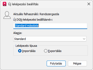 DGN-fájlok importálásának vagy exportálásának leképezését állítja be.