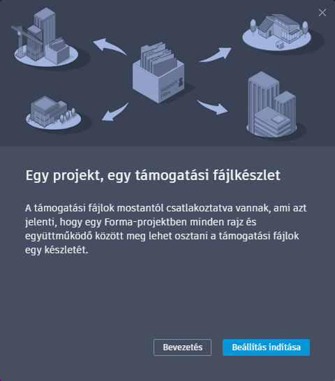 - Az Egy projekt, egy támogatási fájlkészlet párbeszédpanelen kattintson a Beállítás indítása gombra.