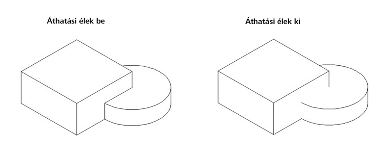 Be- vagy kikapcsolja az áthatási élek láthatóságát. Áthatási élek akkor keletkeznek, amikor egy vagy több szilárdtest metszi egymást. Ha az Áthatási élek láthatósága be van kapcsolva, a program egy vonalat rajzol ott, ahol a szilárdtestek találkoznak.