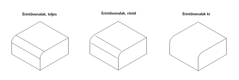 Be- vagy kikapcsolja az érintő élek láthatóságát. Az érintő élek egy sík felület és egy ívelt él között az átmenetet jelölik, és leggyakrabban lekerekített élekként jelennek meg.