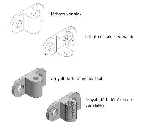 Ábrázolási típusokat ad meg, amelyekkel kiválaszthatja a kiválasztott rajznézetben megjeleníteni kívánt ábrázolásokat. Az ábrázolásokat csak az Inventor-modellek támogatják.