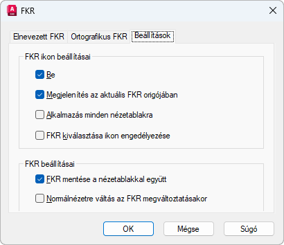 Megjeleníti és módosítja az FKR-ikon beállításait és a nézetablakkal együtt mentett FKR-beállításokat.