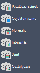 Megjegyzés: Az Intenzitás, a Szintmagasság és az Osztályozás esetében a stilizálás a Pontfelhő színtérképe párbeszédpanelen (PONTFELHŐSZÍNTÉRKÉP parancs) kiosztott színsémák alapján történik. Ha a szükséges adatok nem léteznek a pontfelhőben, az opció ki van szürkítve a Stilizálás legördülő menüben.