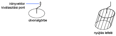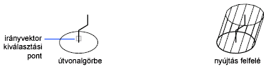 A program egy vonalláncon csak az első és az utolsó pontot veszi figyelembe, a közbenső csúcspontokat figyelmen kívül hagyja. Az irányvektor a kihúzni kívánt alak hosszát és irányát jelzi. A vonalláncon vagy vonalon kiválasztott végpont a kihúzás irányát határozza meg. Az eredeti útvonalgörbe vastag vonalakkal van kirajzolva, így jól láthatóvá teszi, hogyan irányítja az irányvektor a tabulált háló létrehozását.