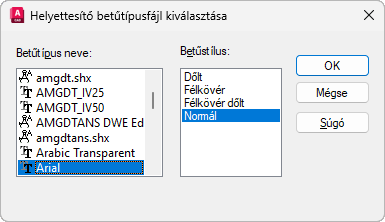 Ha nem határoz meg helyettesítő betűtípust, akkor egy nem meghatározható helyű betűtípusokat tartalmazó rajz megnyitásakor egy párbeszédpanel jelenik meg, ahol megadhat egy betűtípust a hiányzó betűtípusok helyett.