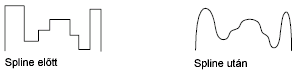• A Beilleszt, Mozgat, Egyenesít és Szélesség opciók automatikusan újraillesztik a spline-görbét.
