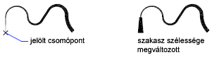 A megjelölt töréspontot közvetlenül követő vonalszakasz kezdő- és végvastagságát módosítja.