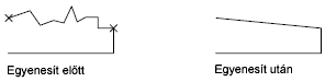 Törli a megadott két töréspont közötti szakaszokat egyetlen egyenes vonallal helyettesítve őket, majd visszatér a Töréspont szerkesztése funkcióhoz. Ha a rajta opció kiadásakor csak egy töréspont van kijelölve és az X jelet nem mozgatja, akkor a megjelölt töréspontot követő szakaszt kisimítja a program, ha az egy ív volt.