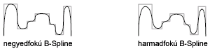 A spline-illesztett vonalláncok sokban különböznek az Illeszt opcióval készített görbéktől. Az Illeszt opció az összes kontrollponton áthaladó ívpárt szerkeszti. Mindkét ív különbözik a SPLINE paranccsal létrehozott igazi D-spline-októl.