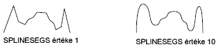 Meglévő spline illesztésére használt szakaszok számának megváltoztatásához változtassa meg a SPLINESEGS rendszerváltozó értékét és generálja újra a görbét. A változtatás előtt nem szükséges a görbét kisimítani.