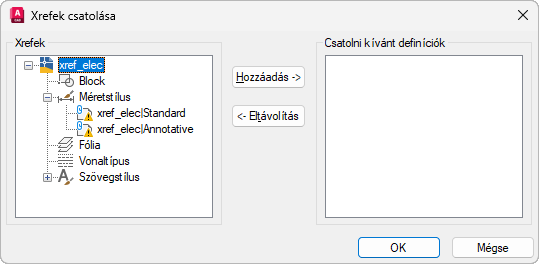 Xrefek csatolása párbeszédpanel