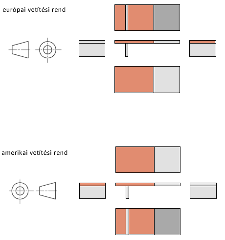 A vetítési rend határozza meg a vetített nézetek helyét. Ha az aktív vetítéstípus például európai vetítés, a program az elölnézet alá helyezi a felülnézeteket. Az amerikai vetítésnél a program az elölnézet fölé helyezi a felülnézeteket.