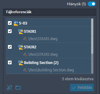 Ez az opció akkor jelenik meg, ha nincsenek hiányzó referenciák az aktuális rajzban. Ha rákattint, Az összes csatolt referencia megjelenítése állapot engedélyezve lesz, és az aktuális rajzhoz csatolt összes referencia látható.