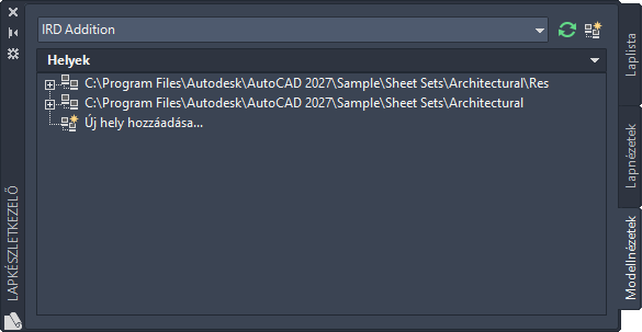 Az aktuális lapkészlethez elérhető rajzfájlok kezelésére hozzáadhat és eltávolíthat mappahelyeket.