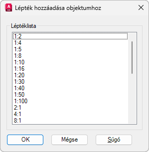 Ha a listát egyéni léptékkel kívánja bővíteni, használja a LÉPTÉKLISTASZERK parancsot.