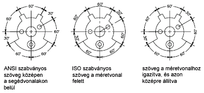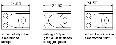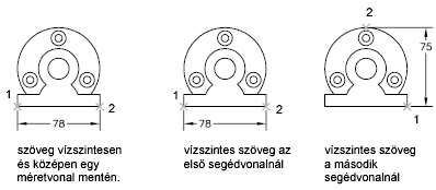 Attól függően, hogy a szöveg a méretsegédvonalon kívül vagy belül esik, választani lehet, hogy a méretvonalhoz legyen igazítva, vagy vízszintes maradjon. A következő példák ezen opciók két lehetséges kombinációját mutatják be.