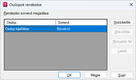 Az oszlopok rendezési sorrendjét adja meg. Az Oszlop rész az Adatok finomítása lapról származó oszlopneveket tartalmaz.