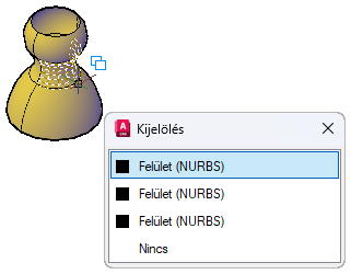 Ha található aktív alobjektum-kiválasztási szűrő, a 3D modell kívánt lapjának, élének vagy csúcsának kijelöléséhez nem kell nyomva tartania a Ctrl billentyűt. Ugyanakkor ki kell kapcsolnia a szűrőt a teljes objektum kijelöléséhez. Az alobjektum-kiválasztási szűrő aktuális beállítását a SUBOBJSELECTIONMODE rendszerváltozó tárolja.