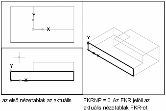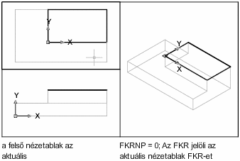 Az alábbi ábrákon egy példa látható. Az elsőn az látható, hogy az izometrikus nézetablakban az egyébként éppen aktuális bal felső (felülnézeti) nézetablak FKR-je jelenik meg.