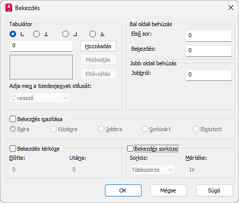 Megjegyzés: Az AutoCAD 2007-ben és a korábbi kiadásokban nem minden új bekezdésre és bekezdés-sorközre vonatkozó opció támogatott.
