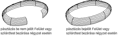 Bezár egy nyitott felületet vagy szilárdtestet. Ennek az opciónak a használatával a keresztmetszeteknek egy tórusz alakú mintát kell alkotniuk, hogy a pásztázott felület vagy szilárdtest egy zárt csövet alkosson. (LOFTPARAM rendszerváltozó)