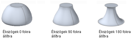 A következő ábra azt mutatja, mi történik, ha különböző kúpossági szöget használunk egy pásztázott szilárdtest első és utolsó keresztmetszeténél. Az első keresztmetszet kúpossági szöge 45 fok, az utolsó keresztmetszet kúpossági szöge pedig 135 fok.