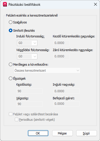 Olyan simított, zárt görbét hoz létre, amelynek vonala nem törik meg a görbe alakjának megváltoztatásakor. Ez a lehetőség csak akkor áll rendelkezésre, ha a pásztázás Szabályos vagy Simított illesztés, és a Felület vagy szilárdtest lezárása opciót választotta.