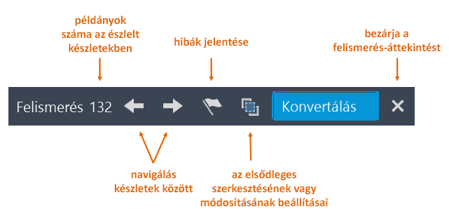 Amikor áttekintési módban van, a Felismerés-áttekintési eszköztár a rajzterület felső részén jelenik meg.