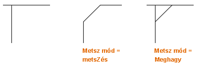 Alapértelmezés szerint a letörés meghatározásához kiválasztott objektumokat a rendszer az eredményül kapott, szöget bezáró vonalhoz metszi vagy hosszabbítja meg. A Metszés opciót annak megadására használhatja, hogy a kiválasztott objektumok módosuljanak-e vagy maradjanak változatlanul.